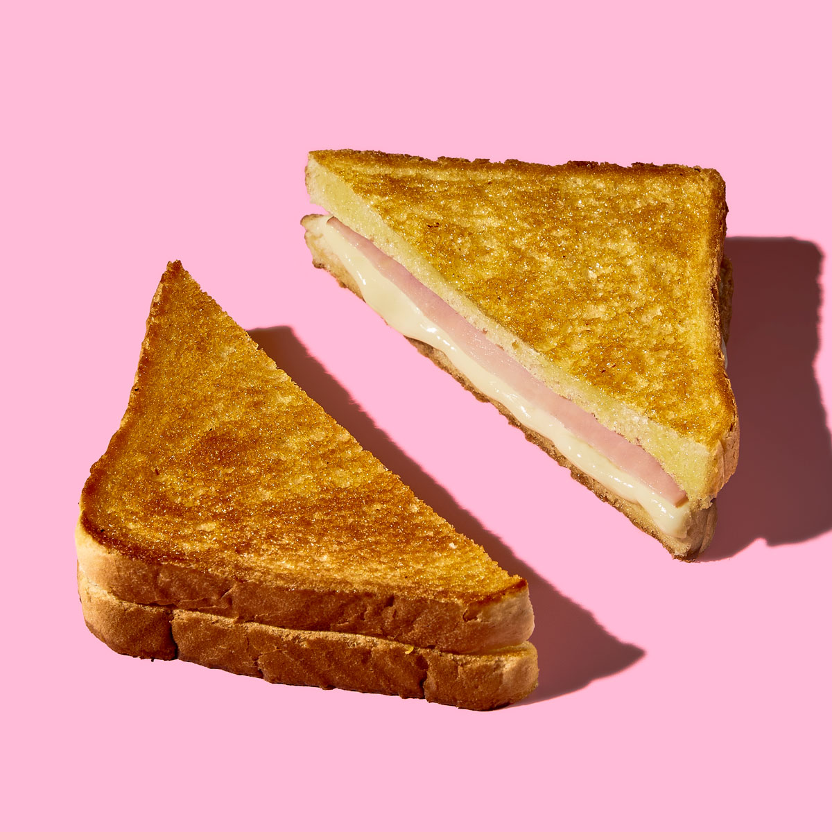 white bread (enriched wheat flour [flour, malted barley flour, reduced iron, niacin, thiamin mononitrate (vitamin b1), riboflavin (vitamin b2), folic acid], water, sugar, yeast, soybean oil, salt, calcium propionate (preservative), monoglycerides, datem, calcium sulfate, soy lecithin, citric acid, grain vinegar, wheat gluten, potassium iodate, monocalcium phosphate), butter (pasteurized cream, salt), pasteurized process swiss and american cheese (milk and part-skim milk, cream, water, sodium citrate, salt, cheese culture, citric acid, sorbic acid (preservative), enzymes, soy lecithin), ham water added (ham, water, dextrose, distilled vinegar, salt, potassium chloride, sodium phosphate, sodium erythorbate, sodium nitrite), bread crumbs (bleached wheat flour, sugar, salt, yeast), maltodextrin.